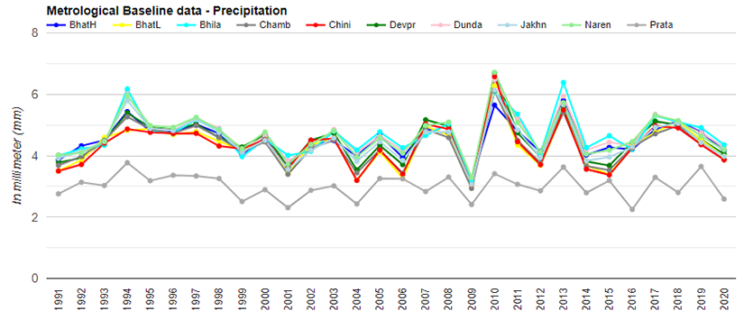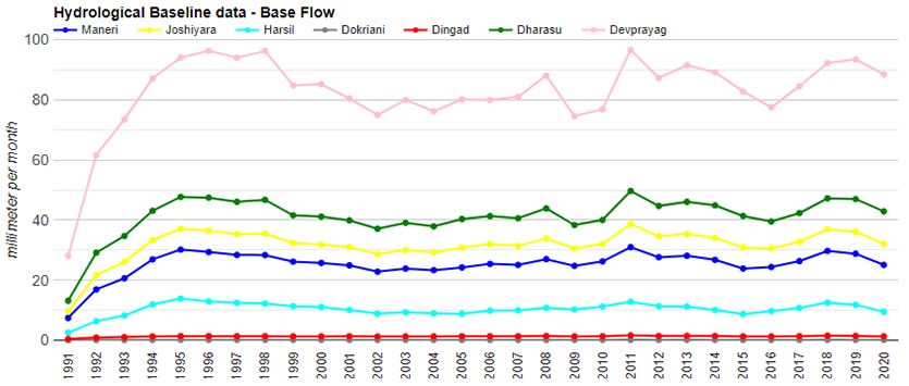Discharge in Bhagirathi basin for baseline period (1991-2020)